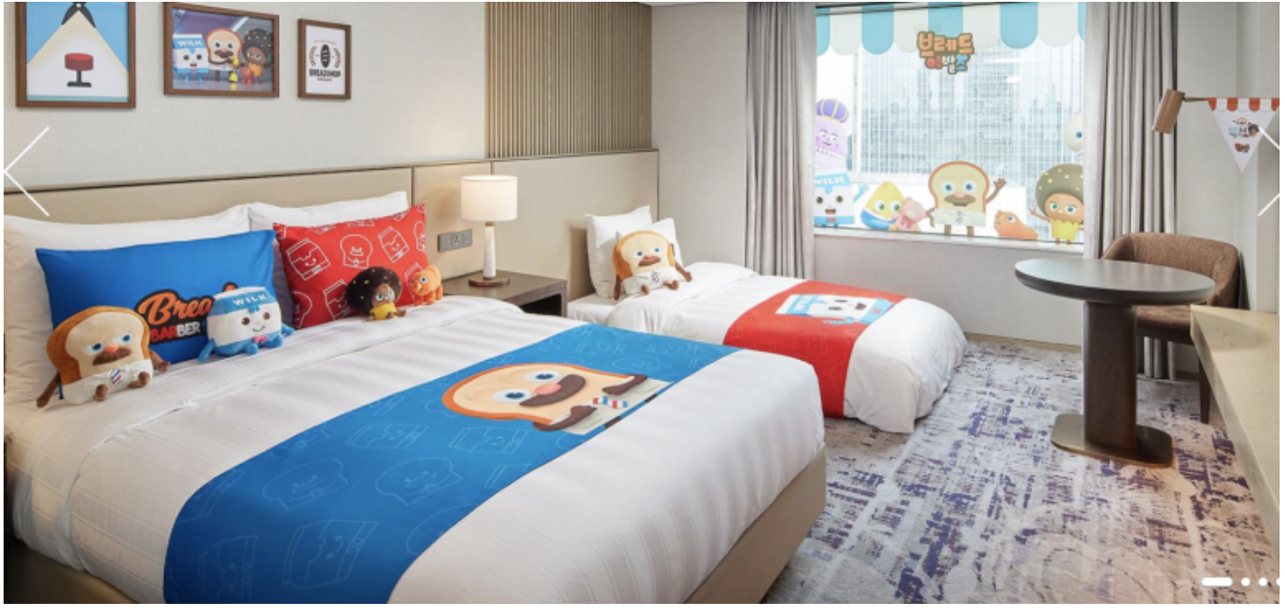 브레드 이발소룸 타입은 3가지이고 패밀리트윈과 더블소파 베드룸은 객실크기와 구조는 같고 침대만 차이 있어요.