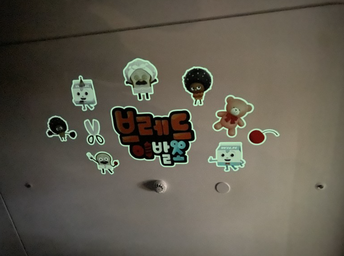 룸에 불끄면 천장에 야광스티커가 있습니다.