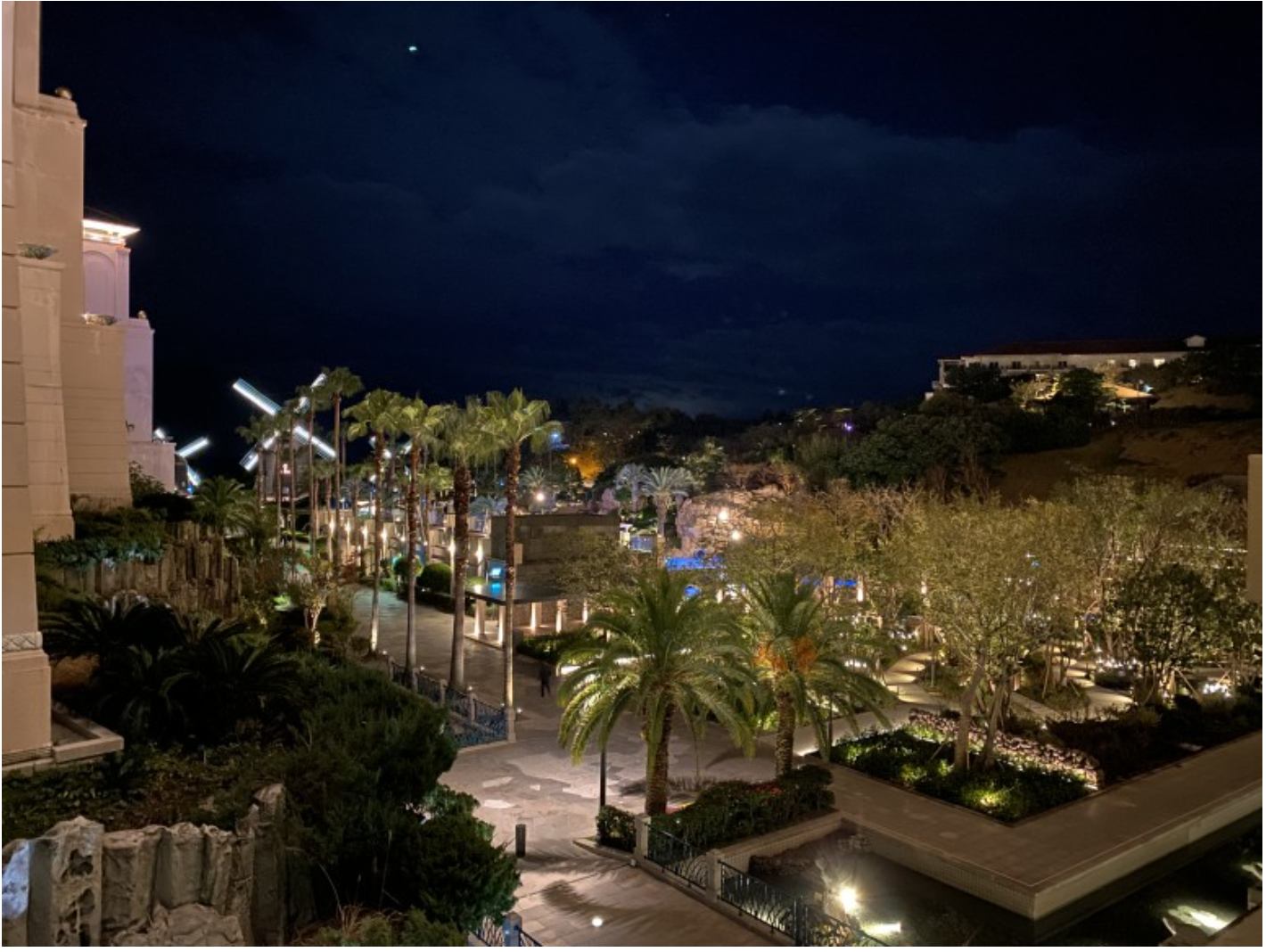 밤 11시 까지 야외 온수풀이 운영하고 있어서 수영하고 싶었지만 날씨가 꽤 쌀쌀해서 수영은 포기하고 산책만 했습니다.