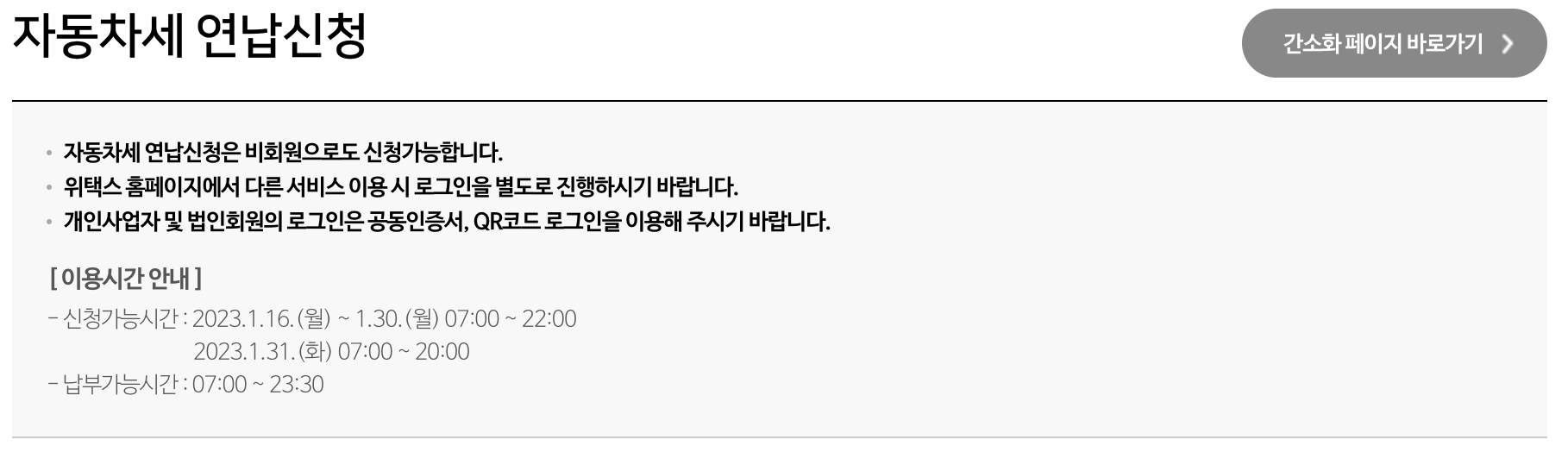 Wetax 위택스 자동차세 연납신청 전용 서비스 간소화페이지