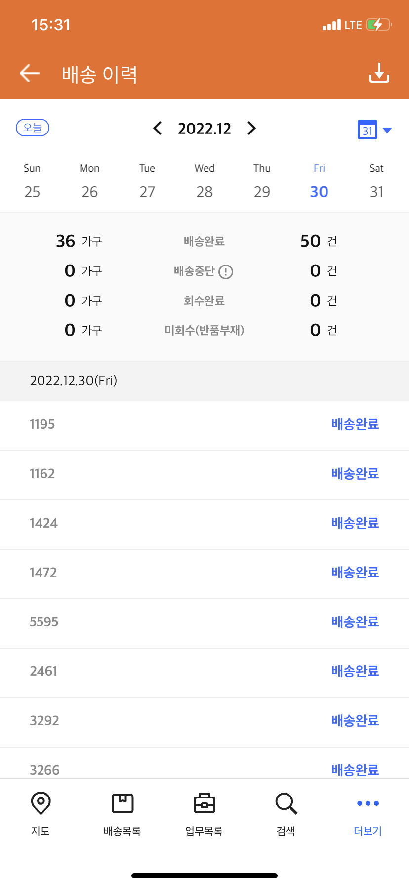 8일에 464건 배송했네요. 크리스마스 지나고 27,31일에는 물량이 엄청 없었나봐요. 아마 5시쯤 들어왔던거 같아요.