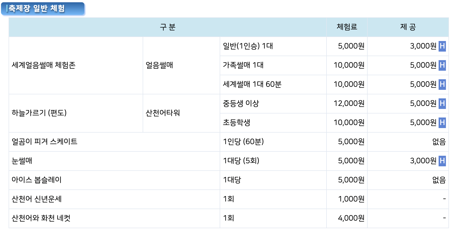 입장료가 비싸지 않은듯 한데 상품권으로도 돌려주니 받은 상품권으로 썰매나 다른 체험들도 즐길수 있을듯 합니다.