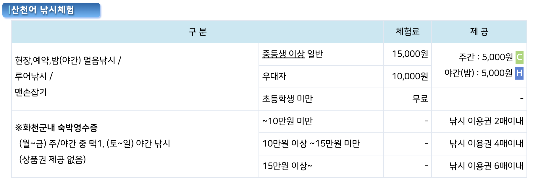 2. 산천어 축제체험 및 입장료 안내