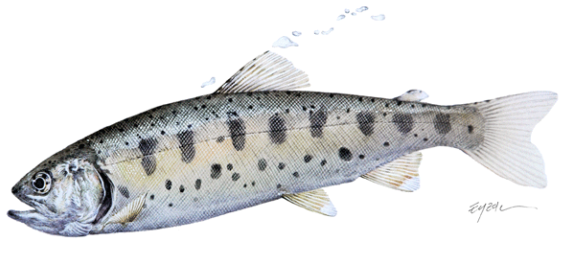 산천어는 연어목 연어과로서, 물이 맑고 수온이 연중 20℃를 넘지 않고, 용존 산소량이 9ppm을 넘는 1급수 맑은 계곡에서 서식하는 냉수성 토종 민물고기입니다.